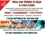 Special Offer for Arabic learners of all levels, including absolute beginners, and with diverse interests. Its the best choice for students who wish to study Arabic intensively and Enjoy the Egyptian Culture. We offer small group program (2-5) in Modern Standard Arabic (MSA) & Egyptian Colloquial Arabic (ECA).